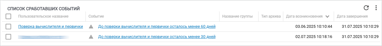 Виджет позволяет отобразить список сработавших событий по прибору учёта/регулятору (рис. 9). Ознакомиться с информацией по работе с функционалом групп событий можно в статье «Группы пользовательских событий». Также имеется описание всех пользовательских событий прибора учёта/регулятора.