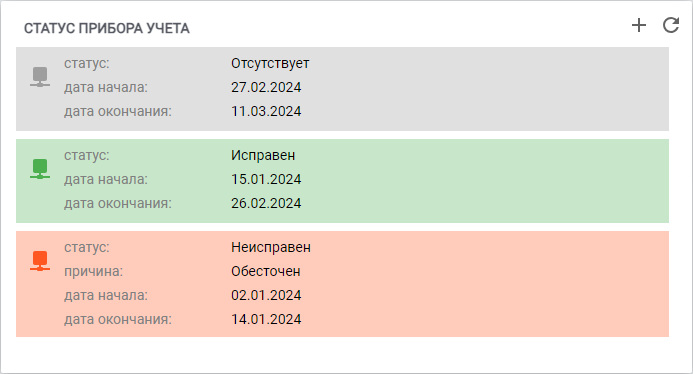 Виджет позволяет выводить статусы прибора учёта (рис. 4).