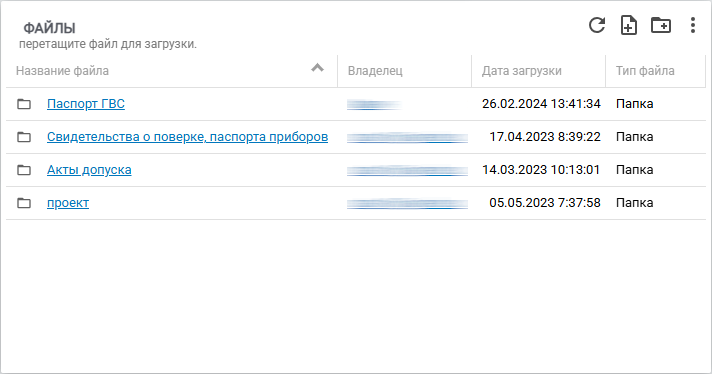 Виджет позволяет отобразить файлы по прибору учёта/регулятору (рис. 10). Подробная информация о взаимодействии с файлами (редактировании, удалении и т.д.) на виджете представлена в отдельной статье.